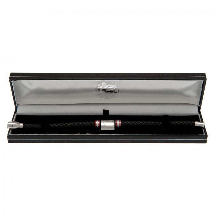 • Bracelet noir avec anneaux de couleur acier inoxydable et écusson du club gravé.